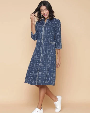 A blue cotton straight casual kurti with a unique blend of comfort and style!